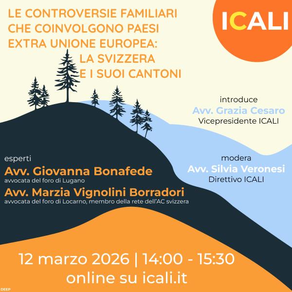 Domani, 12 marzo 2026, si terrà, dalle 14:00 alle 15:30, un webinar dedicato alla gestione delle controversie familiari che coinvolgono Paesi extra-UE e, in particolare, la Svizzera.